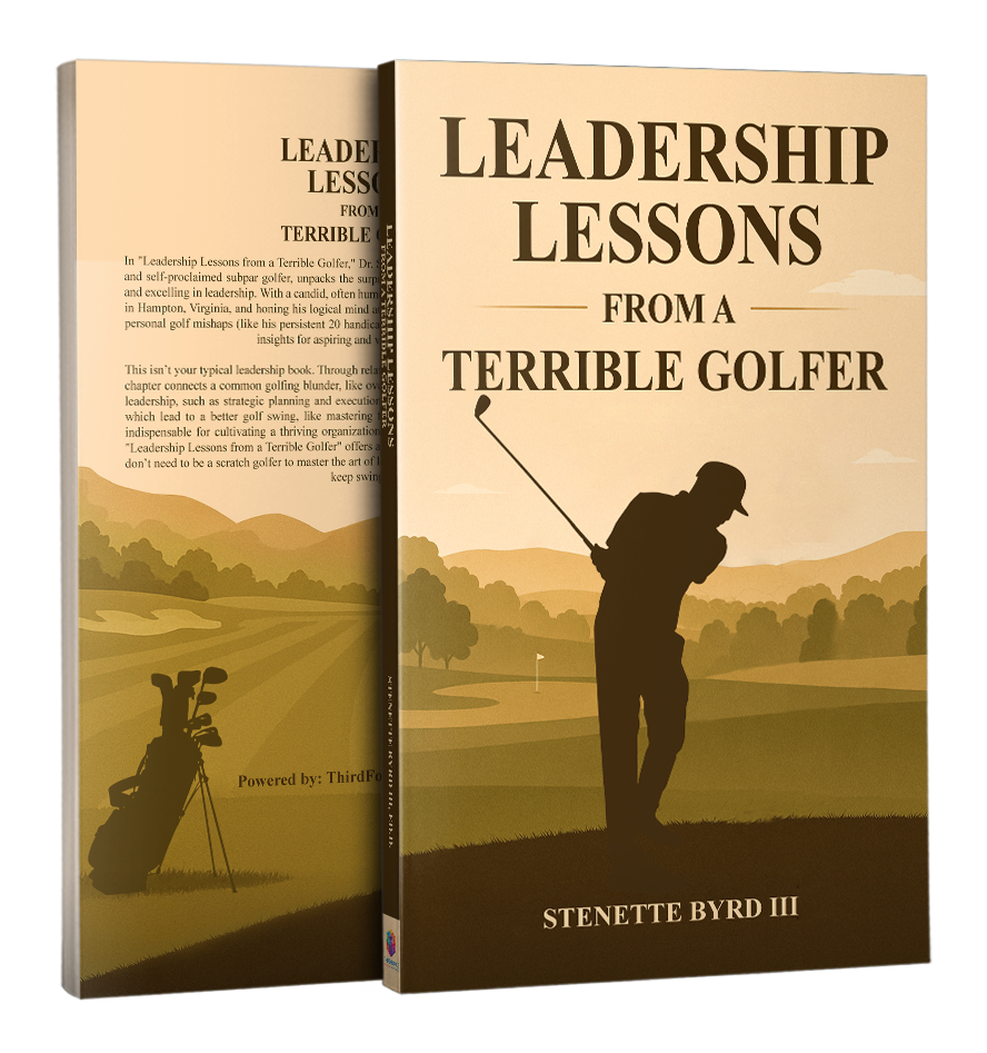 In “Leadership Lessons from a Terrible Golfer,” Dr. Stenette Byrd III, a seasoned educational leader and self-proclaimed subpar golfer, unpacks the surprising parallels between failing on the fairway and excelling in leadership. With a candid, often humorous lens rooted in his experiences growing up in Hampton, Virginia, and honing his logical mind at Norfolk State University, Dr. Byrd transforms personal golf mishaps (like his persistent 20 handicap and elusive quest to break 90) into profound insights for aspiring and veteran leaders alike.